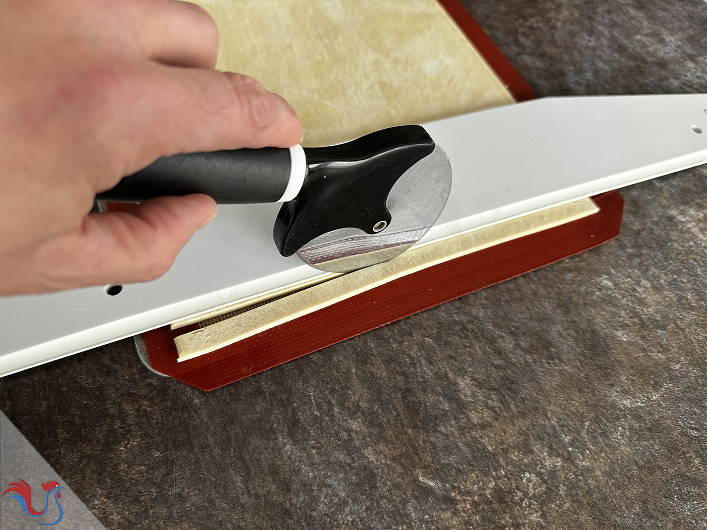 3. Découper une fine bande tout autour de la pâte (moins d'1 cm)