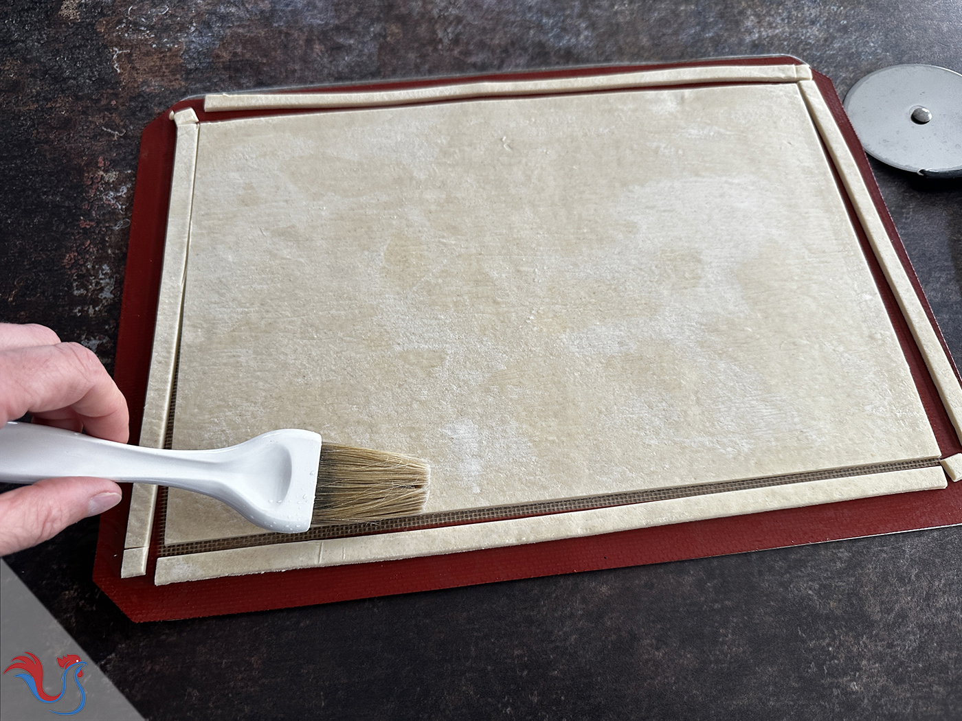 4. Passer une fine couche d'eau autour de la pâte : cela va servir de "colle"