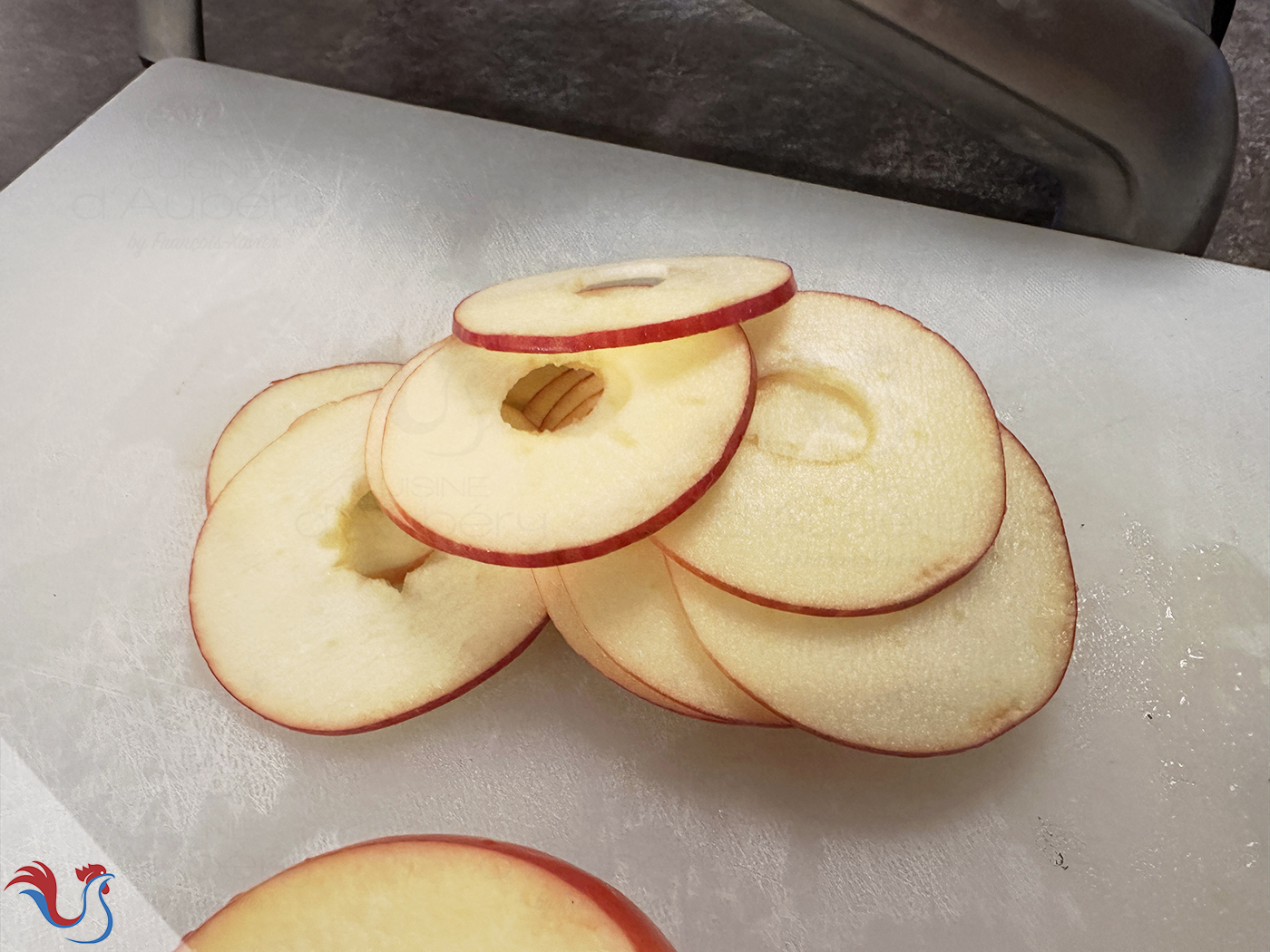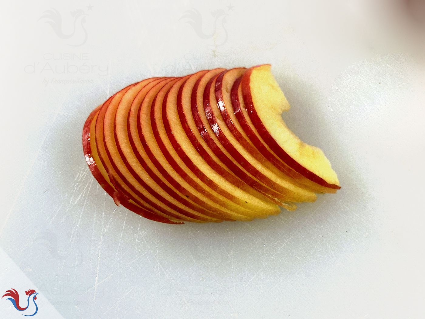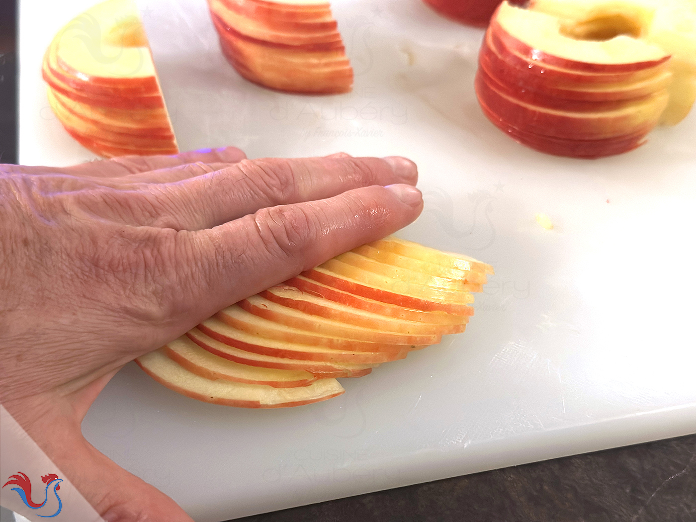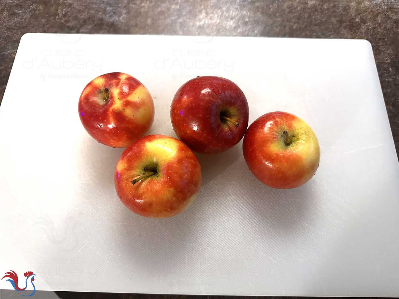 19. Pour les Pommes (4), je vous laisse choisir votre variété préférée. Pour ma part, je privilégie des pommes aux teintes variées et soutenues, afin d’apporter davantage de relief visuel à la tarte