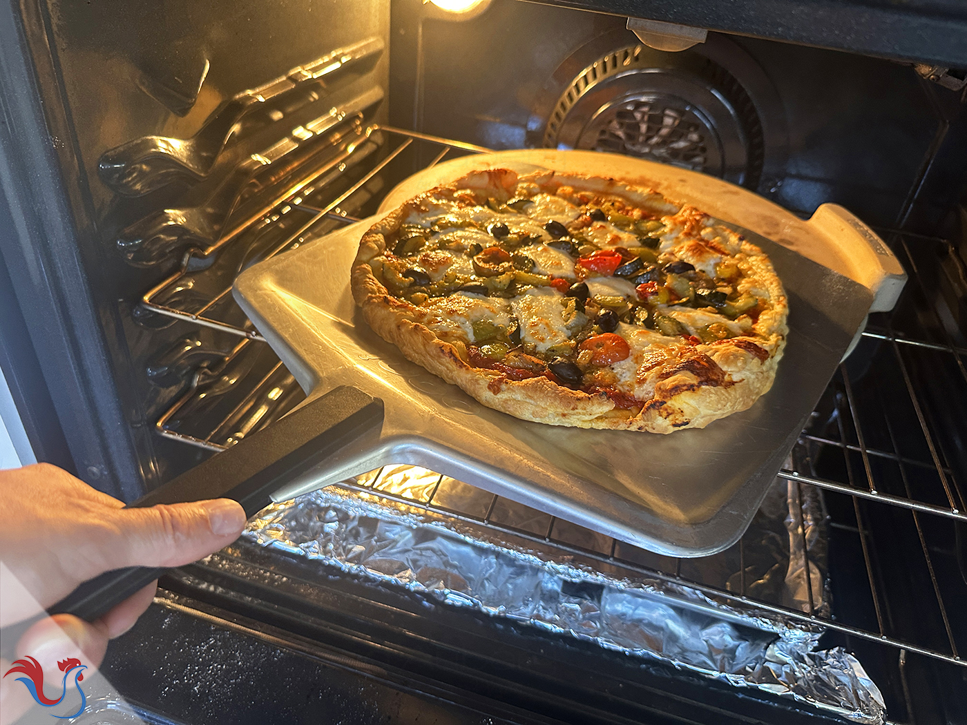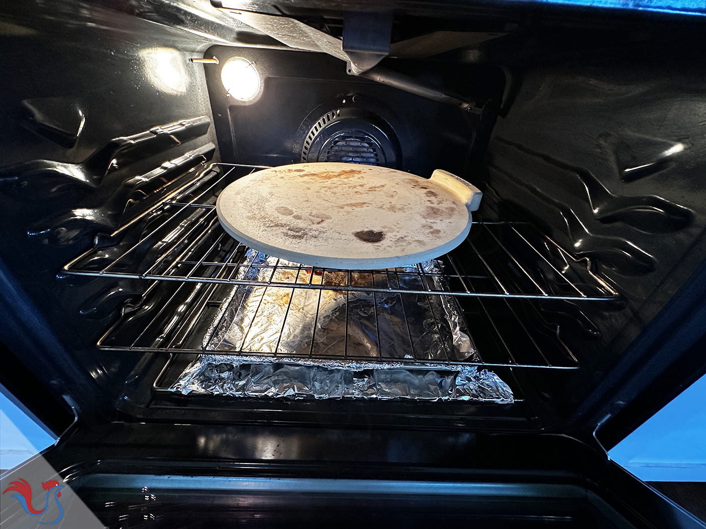 10. La pierre, ou la plaque, est chauffée, ce qui va permettre un "effet souffle" quand la pizza cuira