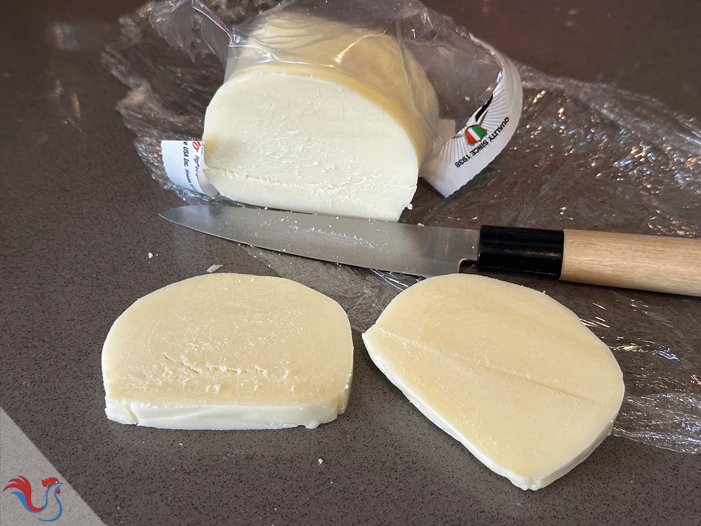 25. Ensuite, je découpe de bons morceaux de Mozzarella, mais attention a ne pas prendre celle qui est "molle", car elle va détremper.