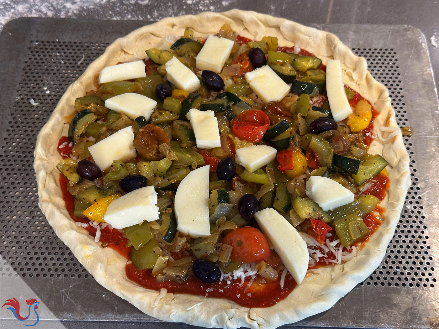26. Je prends de la Mozzarella à faible teneur en humidité, elle est plus dure que la mozza (que l'on prend pour les salades) ainsi elle fondra sans devenir une flaque d'eau sur la pizza