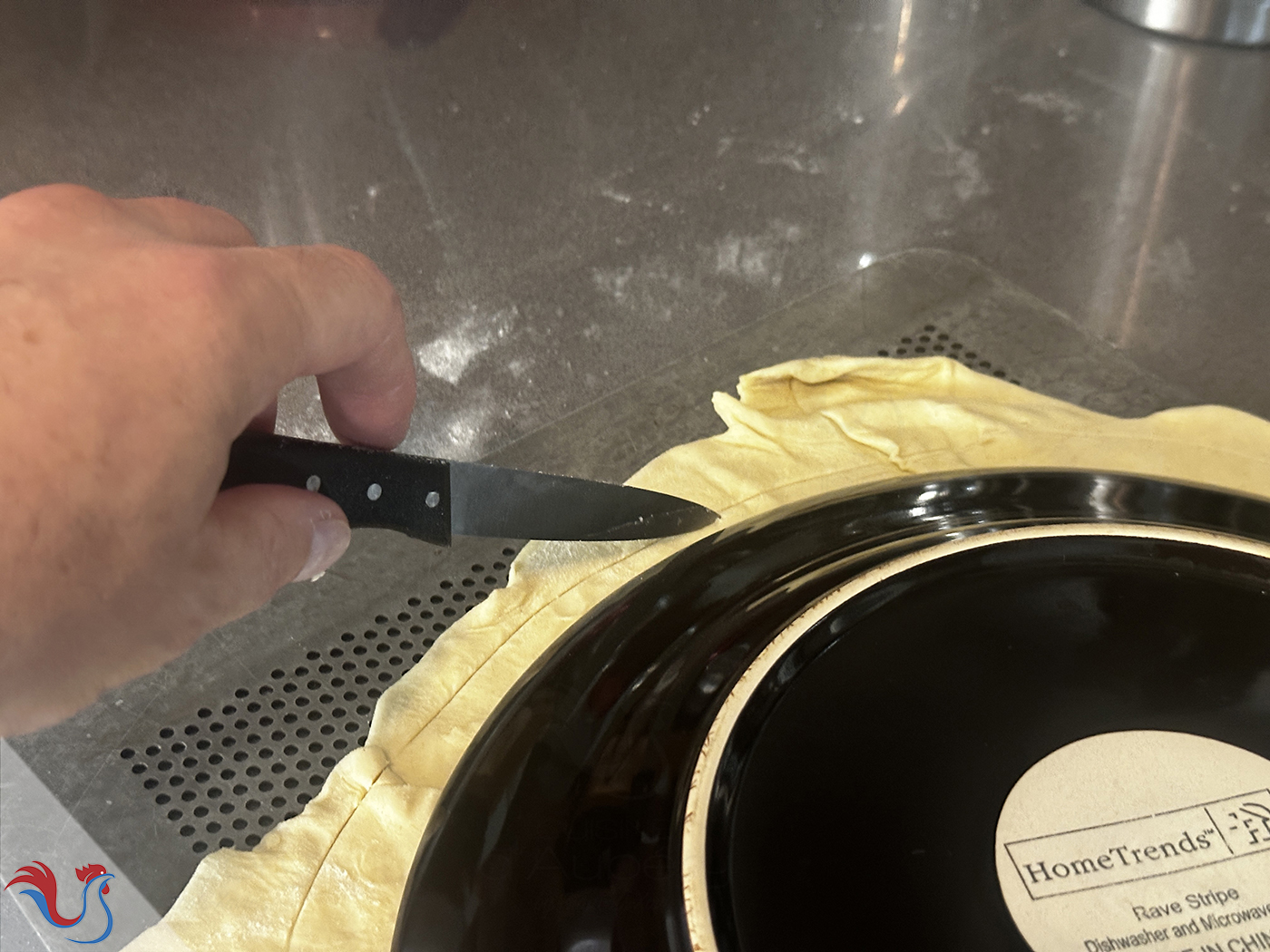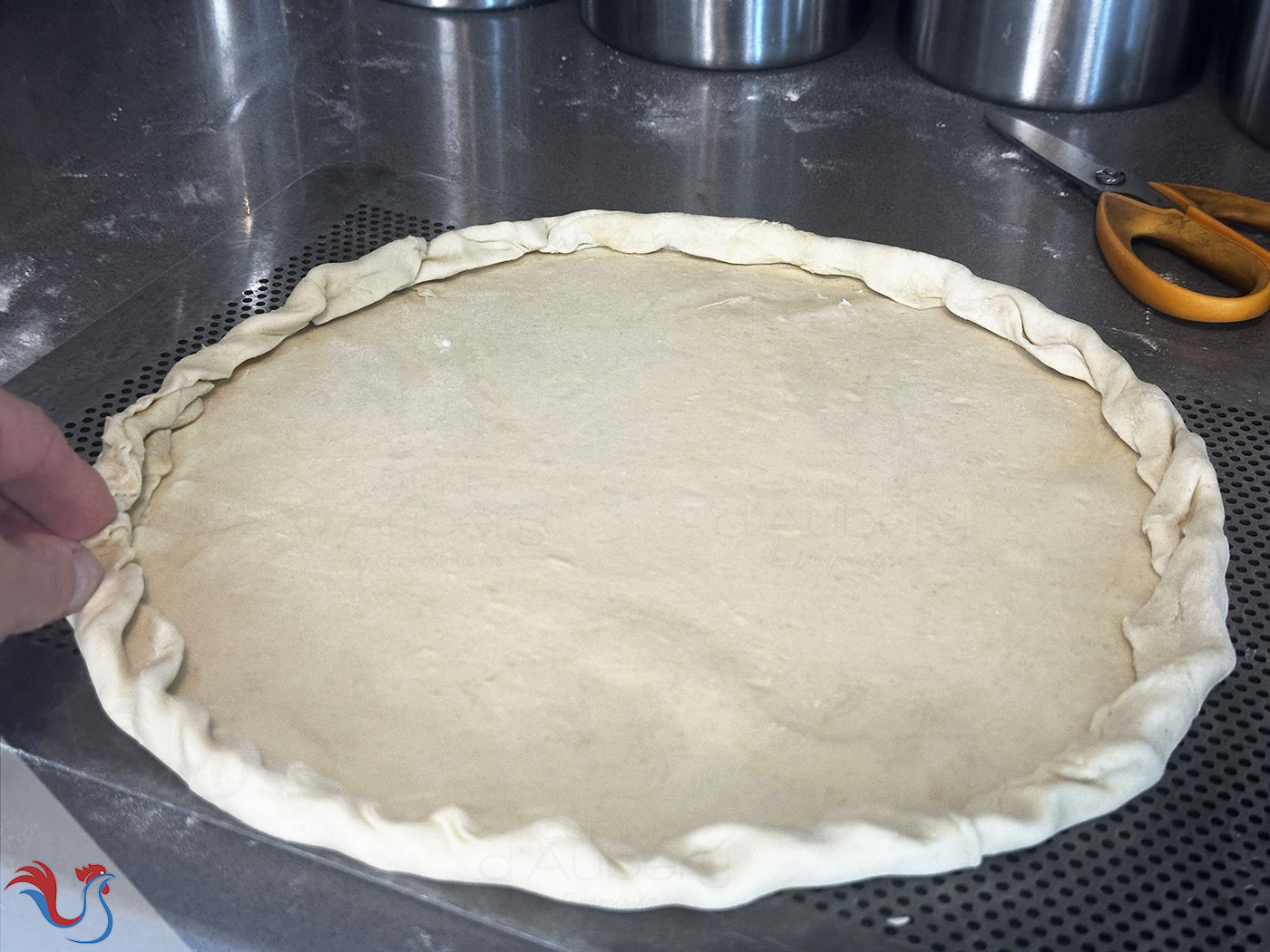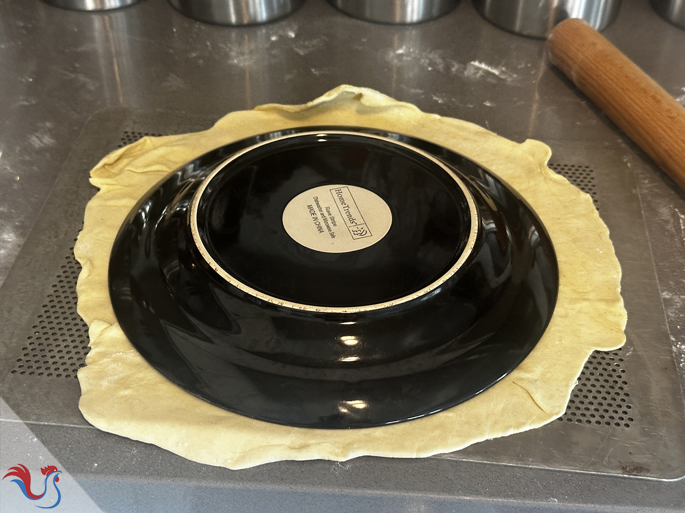 4. Poser une assiette, et tracer un cercle dans la pâte (sans couper), juste pour faire une "marque" qui va nous guider